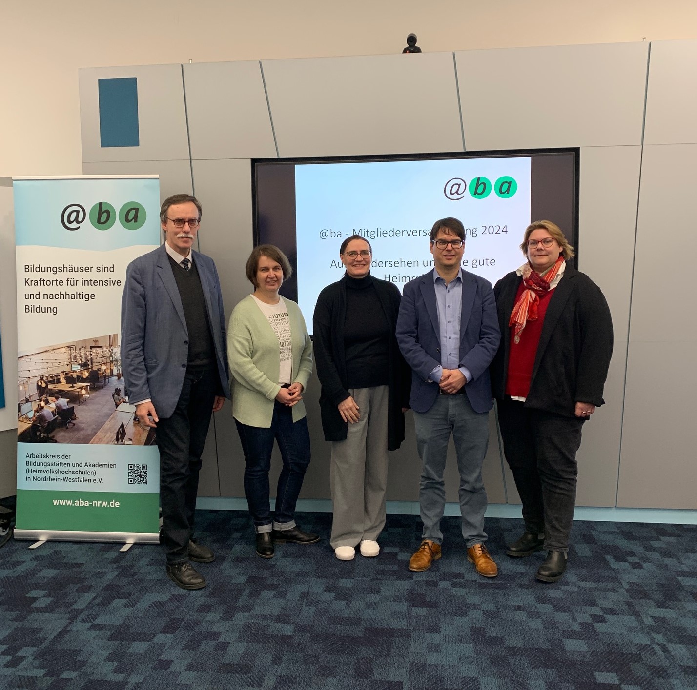 Der @ba setzt sich für das Prinzip Lernen und Leben unter einem Dach ein, damit die Mitgliedseinrichtungen auch künftig Orte sind an denen Bildung Zeit und Raum hat. Die Akademie Biggesee ist seit vielen Jahren Mitglied im @ba, seit 2021 ist Ines Gerke-Weipert gewähltes Mitglied im Vorstand. Dort vertritt sie gemeinsam mit drei weiteren Vorstandsmitgliedern und der Geschäftsführung die Interessen der @ba-Mitglieder gegenüber Politik, Behörden und der Öffentlichkeit. Der frisch gewählte Vorstand wird sich in den kommenden drei Jahren u.a. mit den im Koalitionsvertrag der Landesregierung vereinbarten Mitteln zur Unterstützung der Sanierung von Bildungsstätten und der anstehenden Evaluation des novellierten Weiterbildungsgesetzes beschäftigen. Aktuell stehen vor allem die im Haushalt 2025 vorgesehen Kürzungen der Mittel für die Weiterbildung im Fokus der Arbeit.